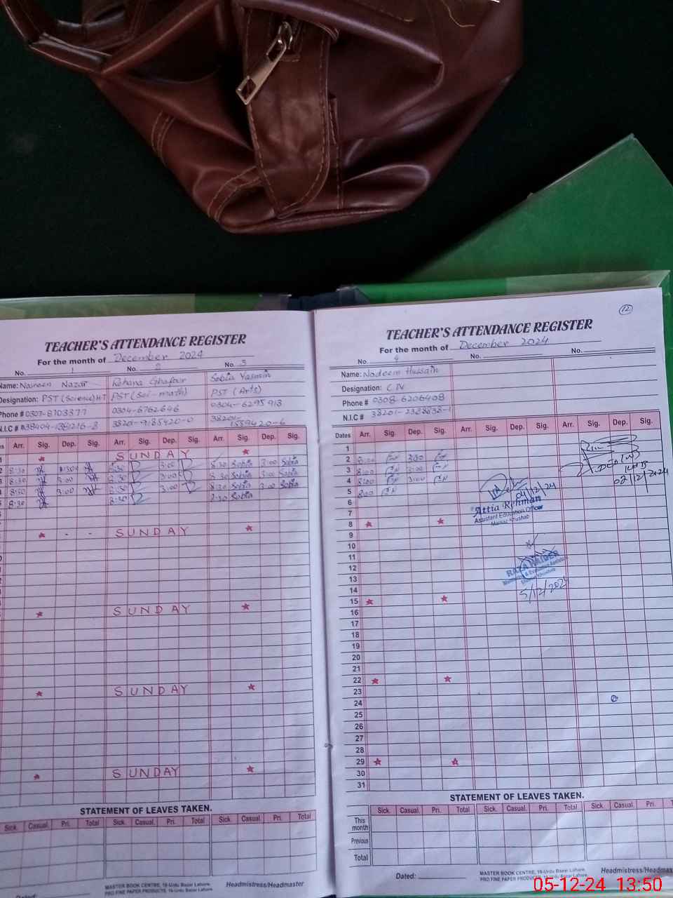 | CNIC | Full Name | Designation | R/C | Absence During Last Calender Month |