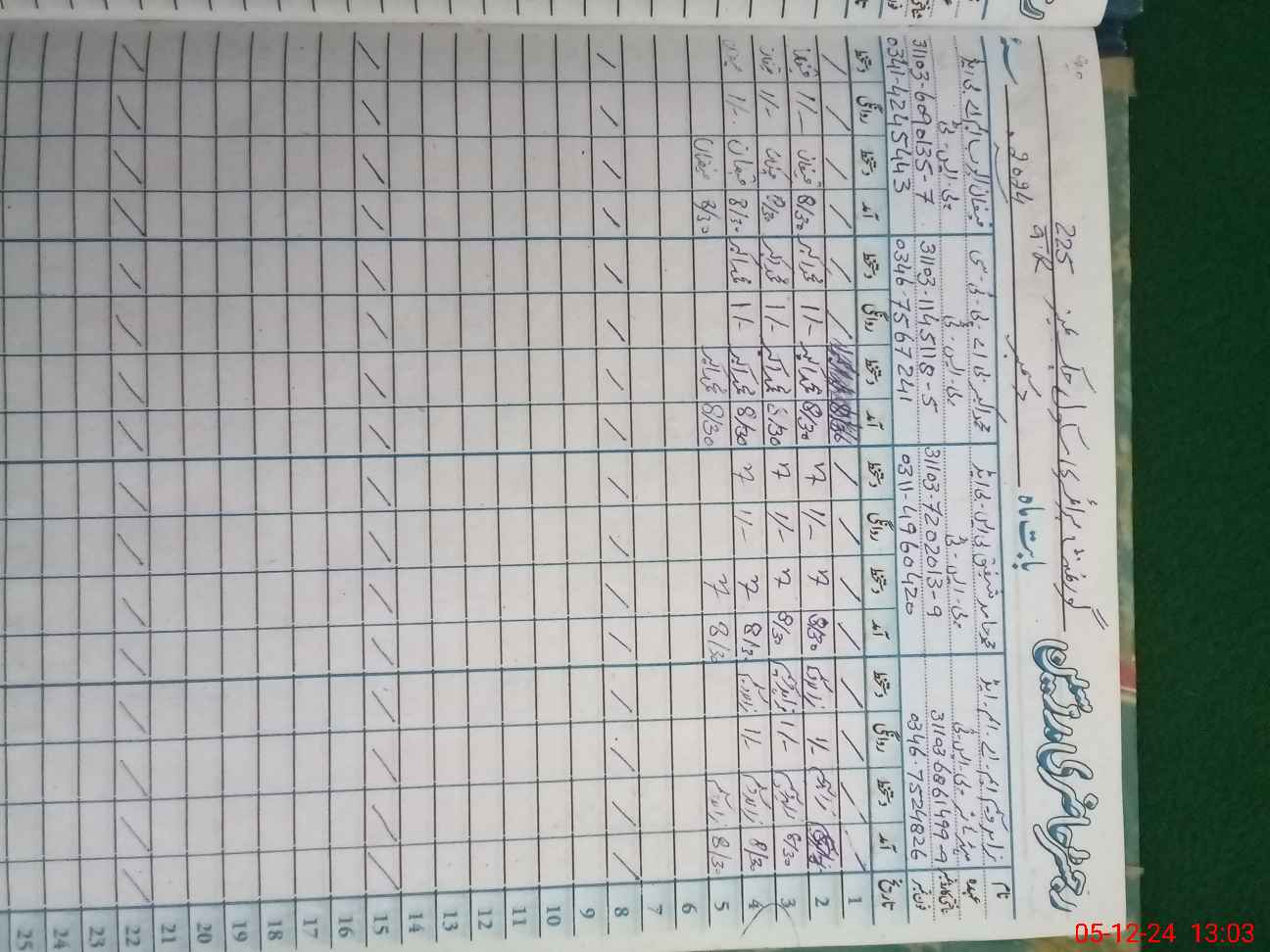 | CNIC | Full Name | Designation | R/C | Absence during last cal. month |