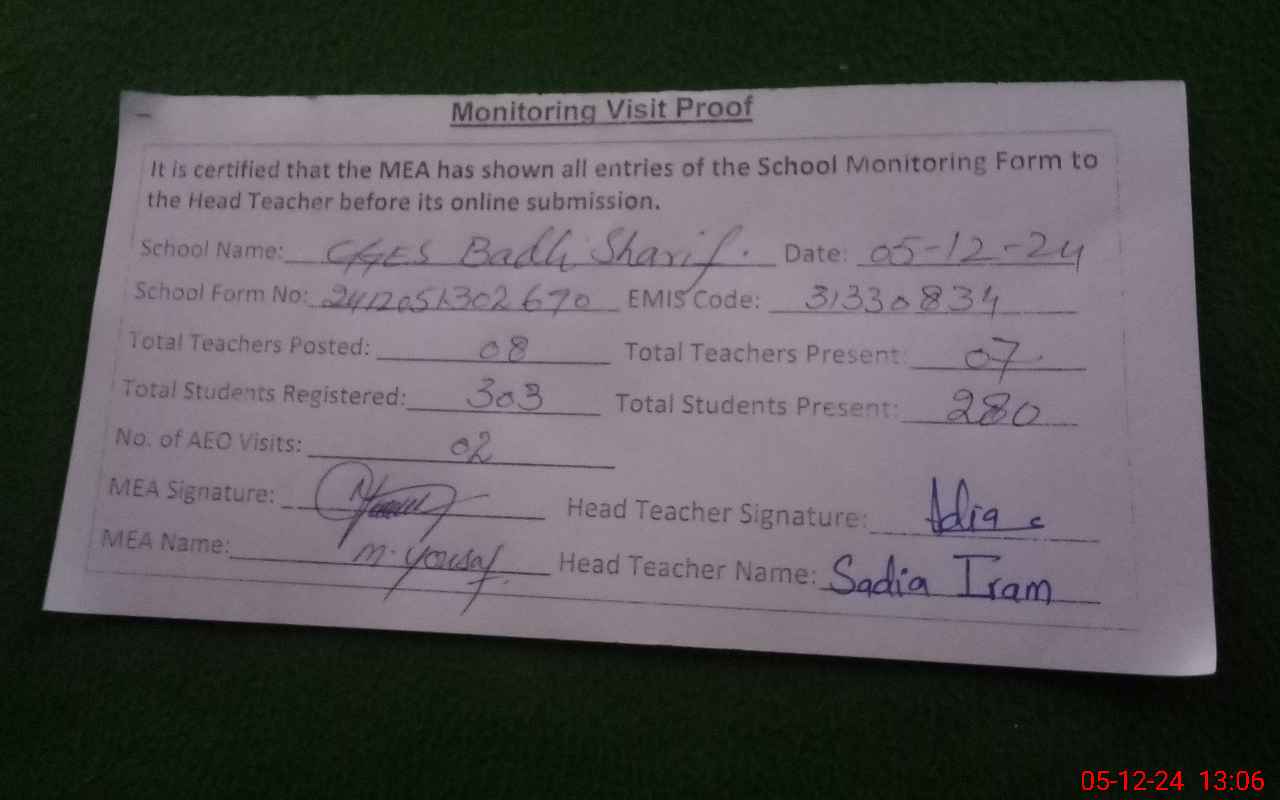 | EMIS Code: 31330834 | Name of School: GGES BADLI SHARIF | |||