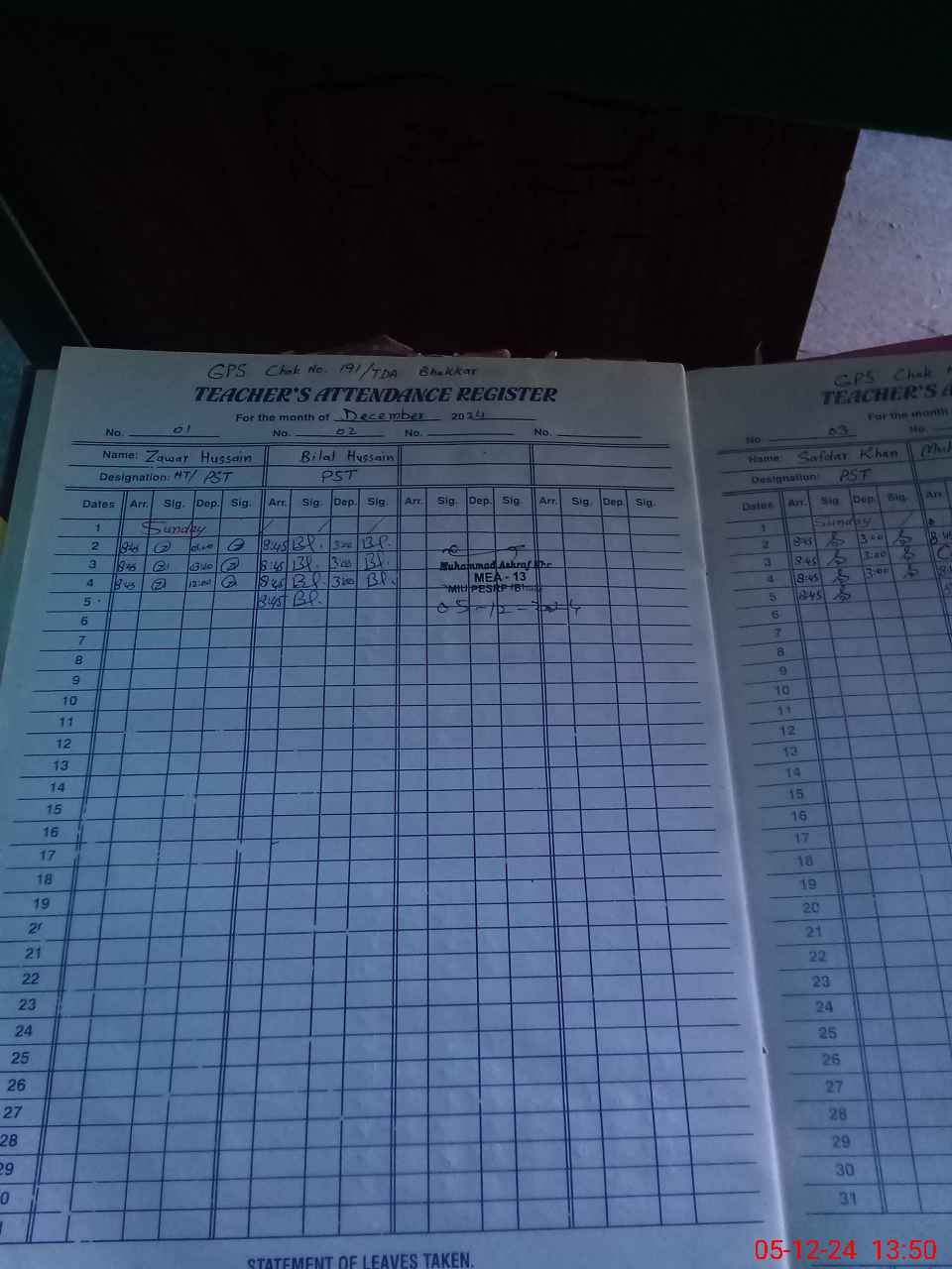 | Name: Za**** Hu**** Designation: (School Headmaster's/Headmistress's) PST Phone/Cell Number: 03**** |