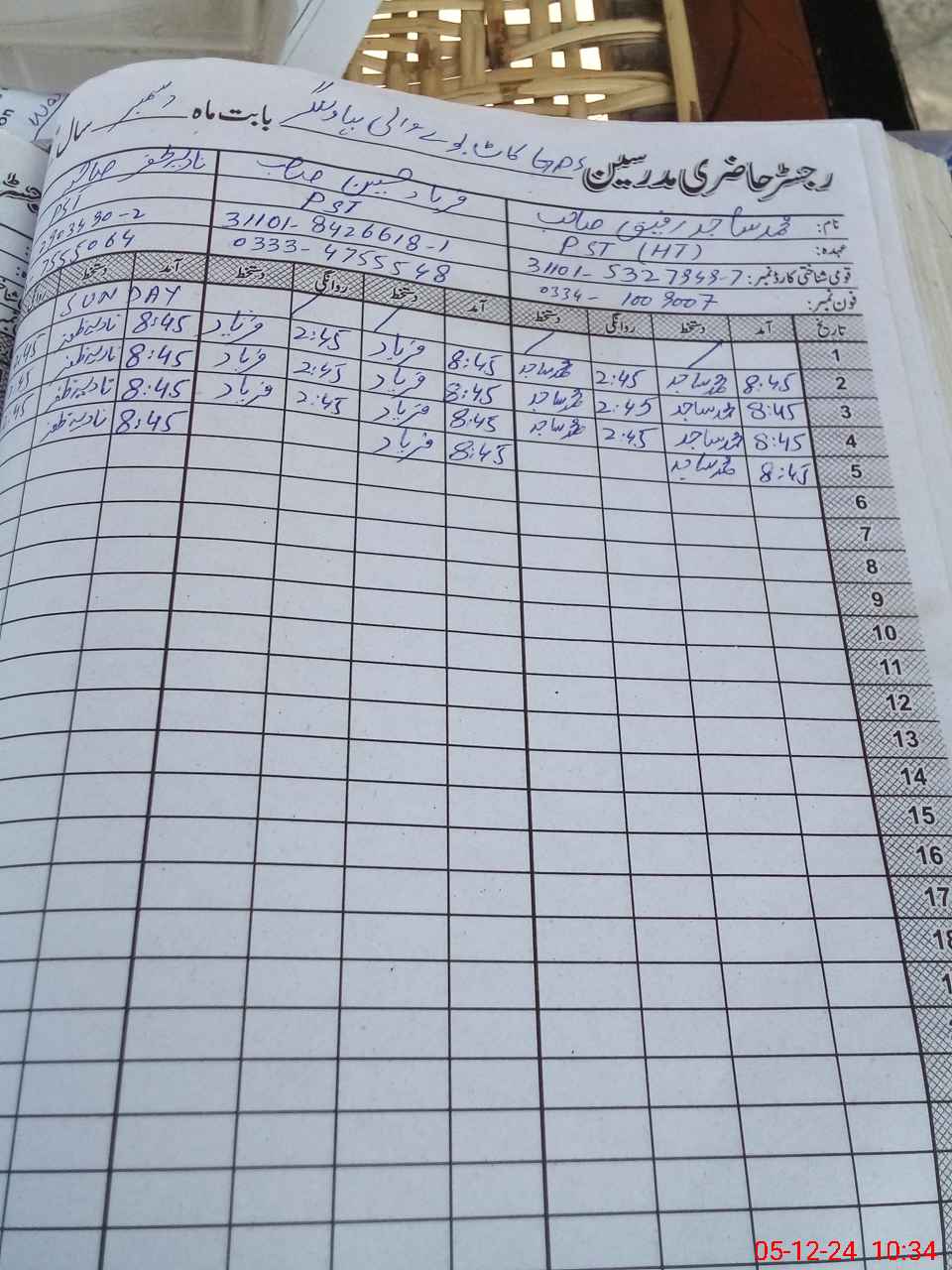| Name: MSa**** Ra**** Designation: (School Headmaster's/Headmistress's) PST Phone/Cell Number: 03**** |