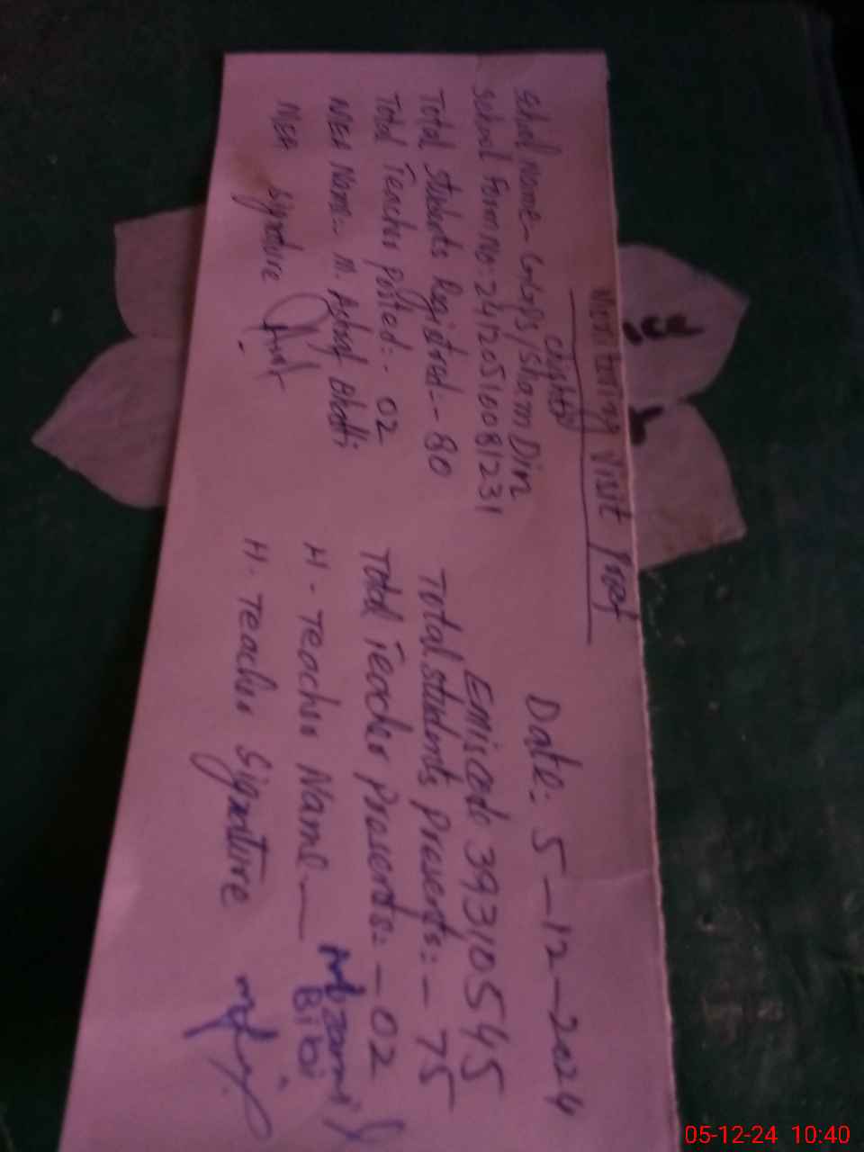 | Certified that this School was Inspected by the Undersigned MEA/DMO Today and the Information Stated Above is as Per Record. | |||||