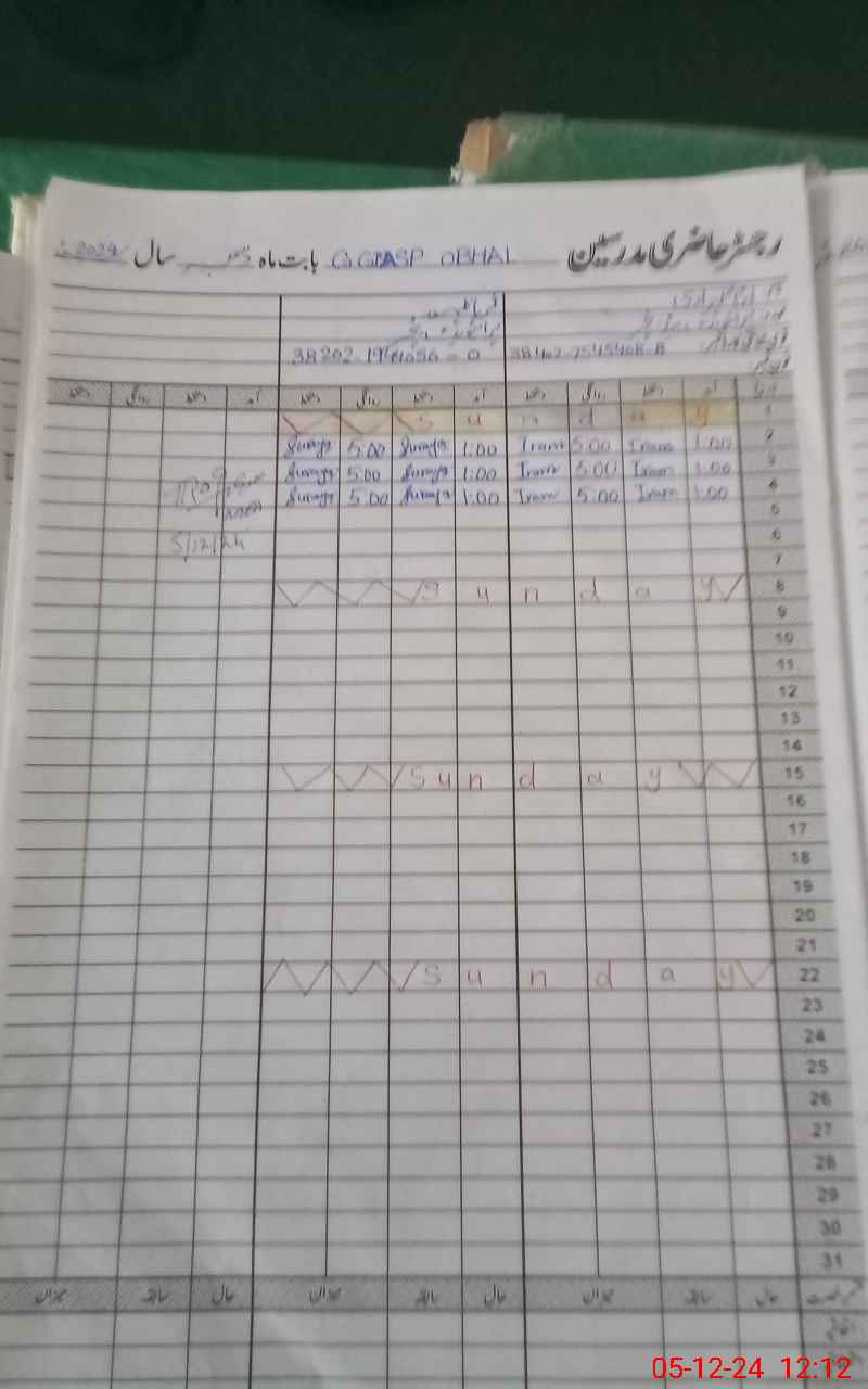 | 38**** | Qu**** UlAi**** Ma**** | 2 | 0 | 0 | 30 | 0 | 0 | 0 | 0 | 0 | 0 | Absent (Un-Authorized) | |
