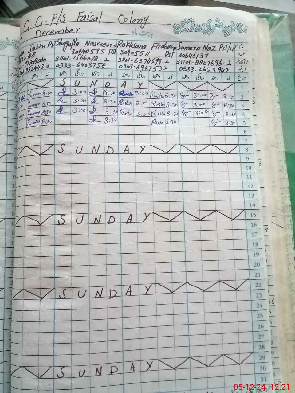 | CNIC | Full Name | Designation | R/C | Absence During Last Calender Month |