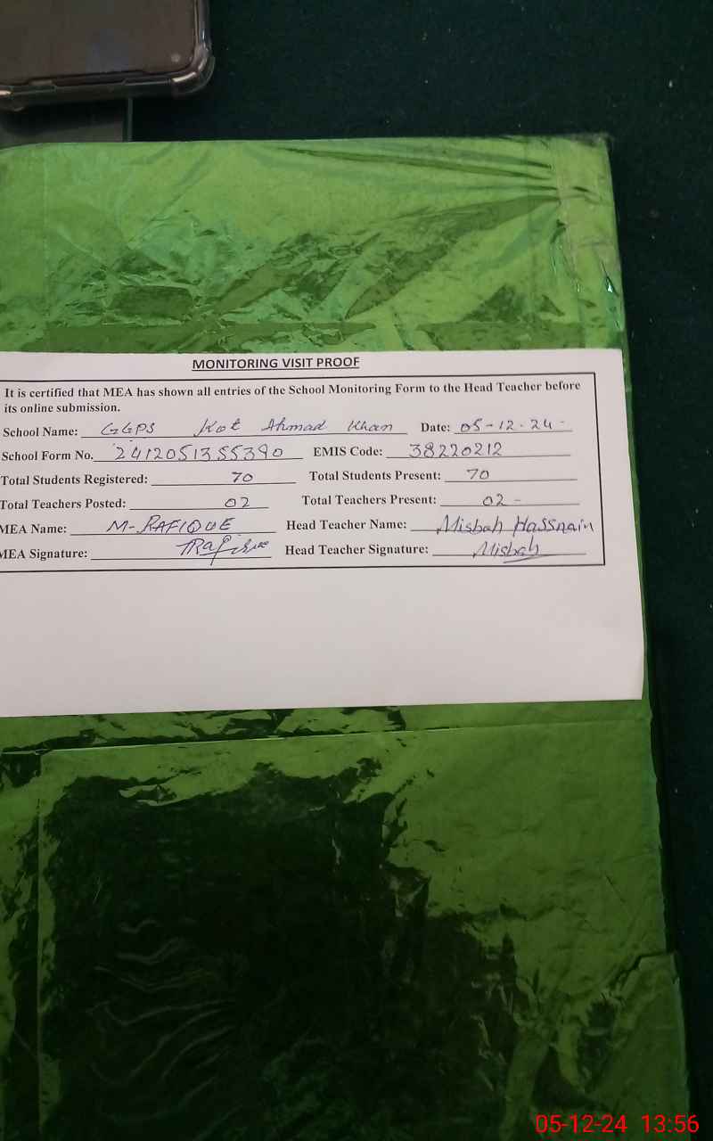 | EMIS Code: 38220212 | Name of School: GGPS KOT AHMAD KHAN | |||