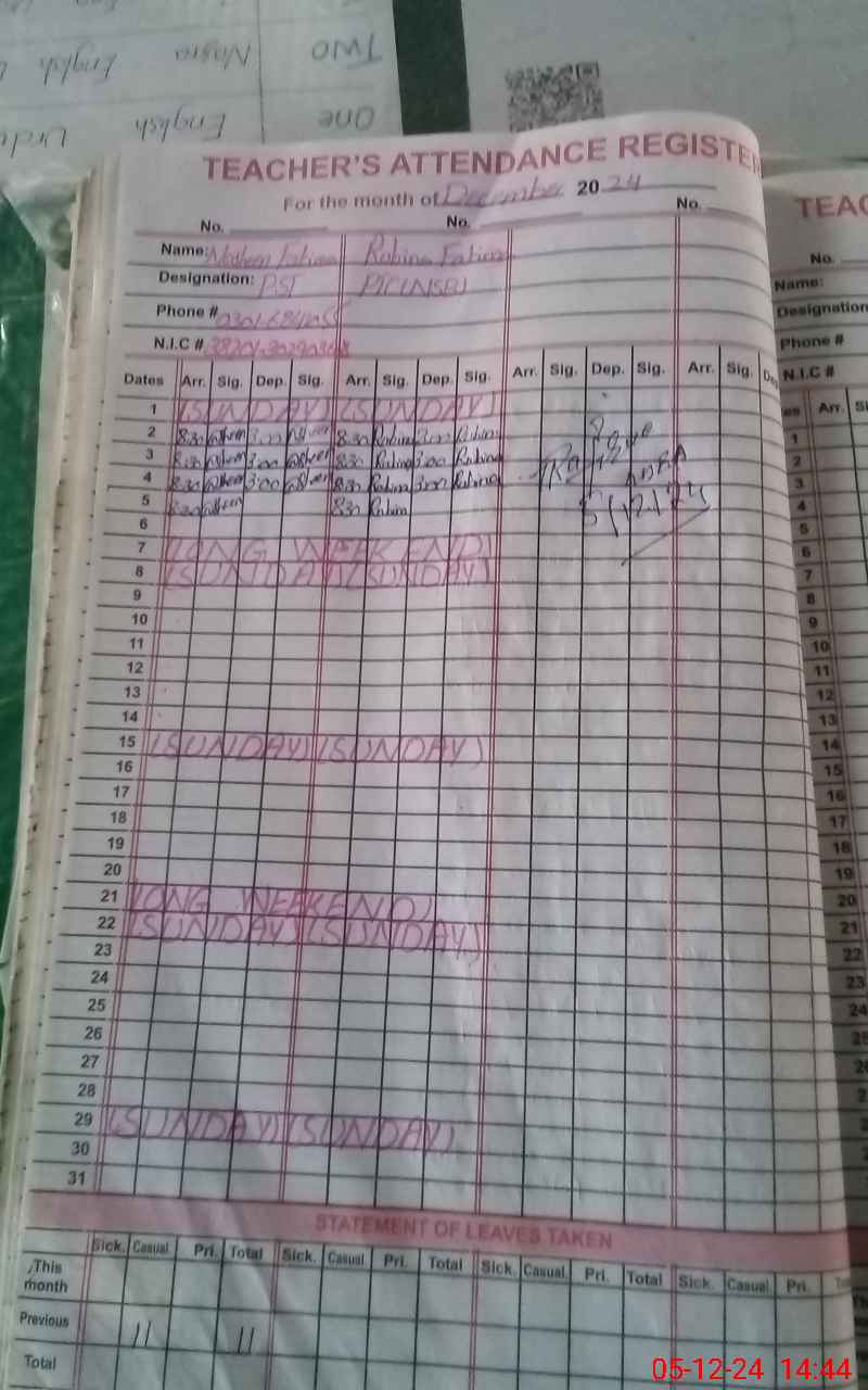 | Name: NO**** FA**** Designation: (School Headmaster's/Headmistress's) PST Phone/Cell Number: 03**** |