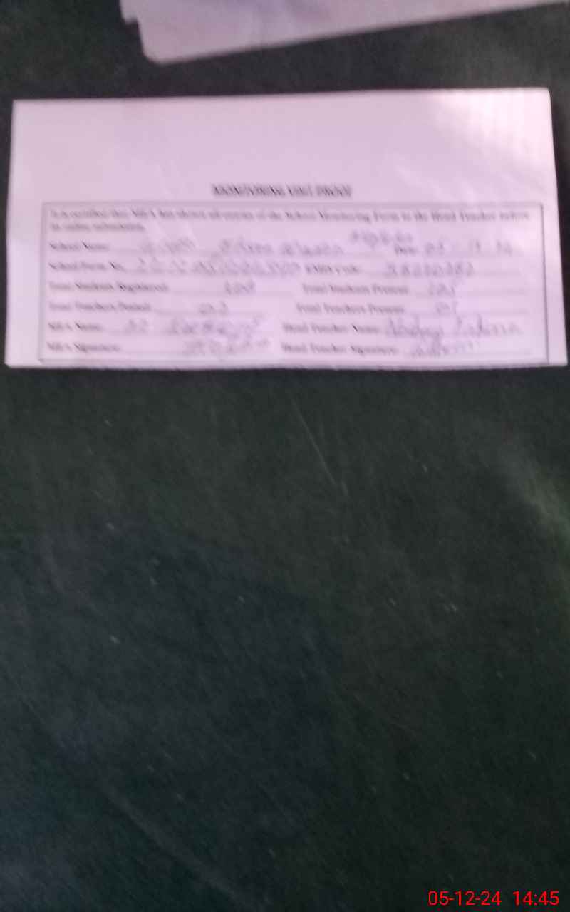 | Attendance Register | Head Teacher | MEA with School | Visit Proof |