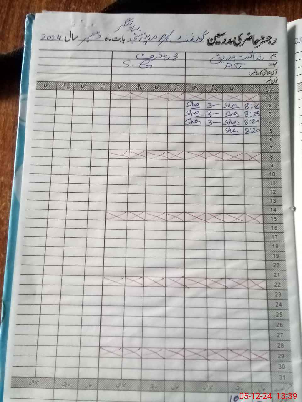 | Name: Sh**** Designation: (School Headmaster's/Headmistress's) PST Phone/Cell Number: 03**** |