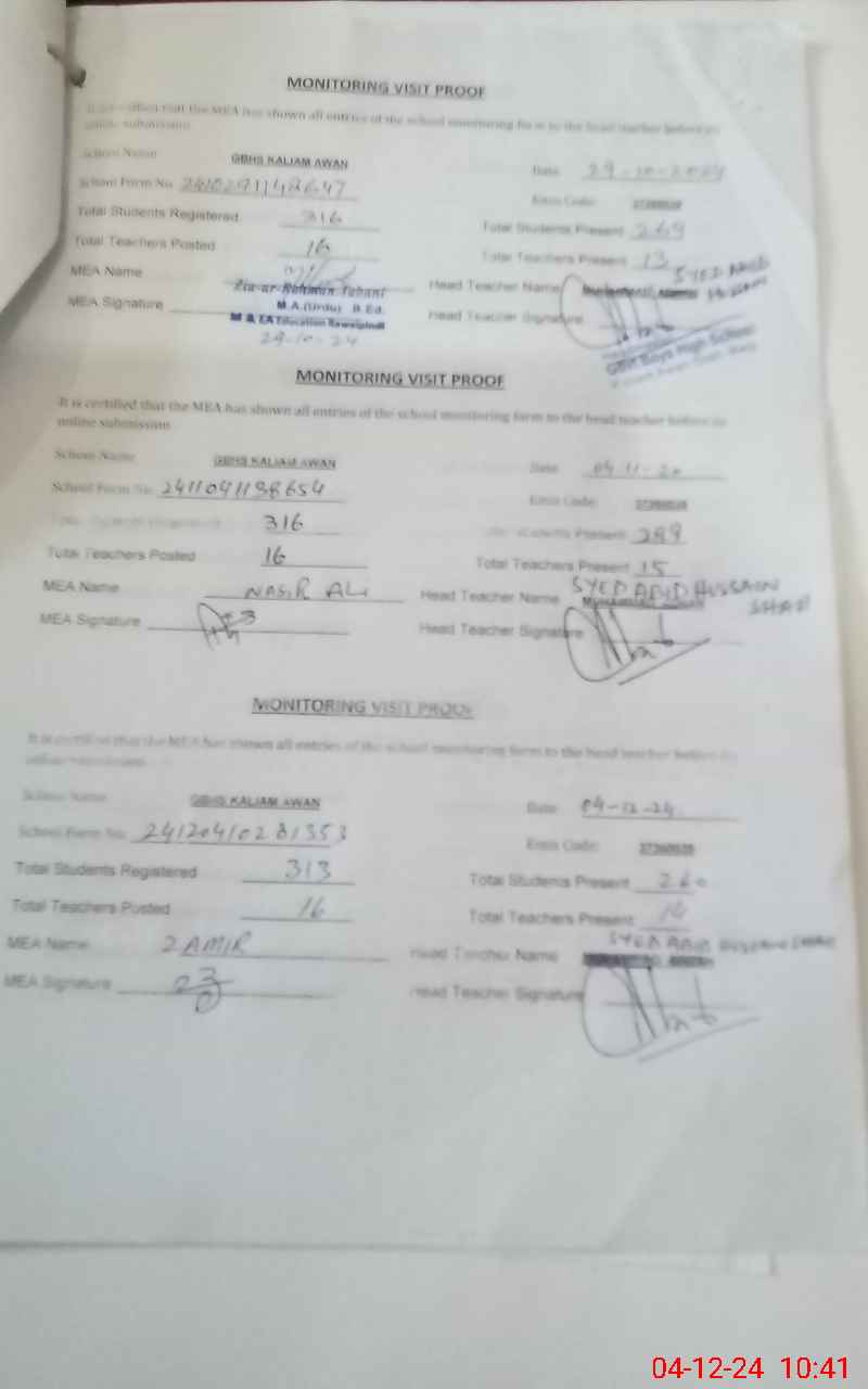 | EMIS Code: 37360039 | Name of School: GHS KALIAM AWAN | |||