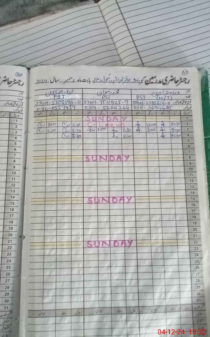 | Name: Za**** Sh**** Designation: (School Headmaster's/Headmistress's) PST Phone/Cell Number: 03**** |