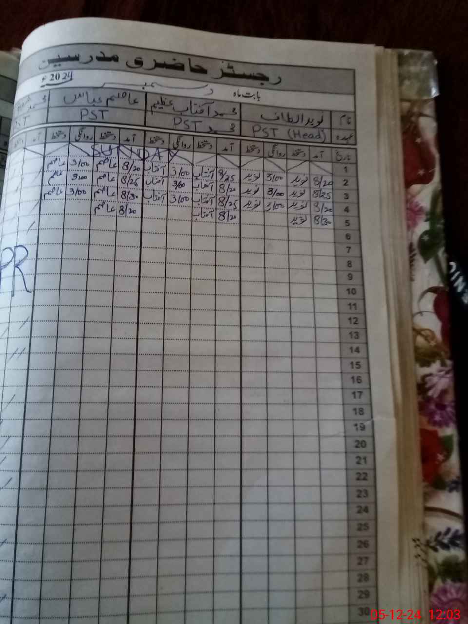| CNIC | Full Name | Designation | R/C | Absence During Last Calender Month |