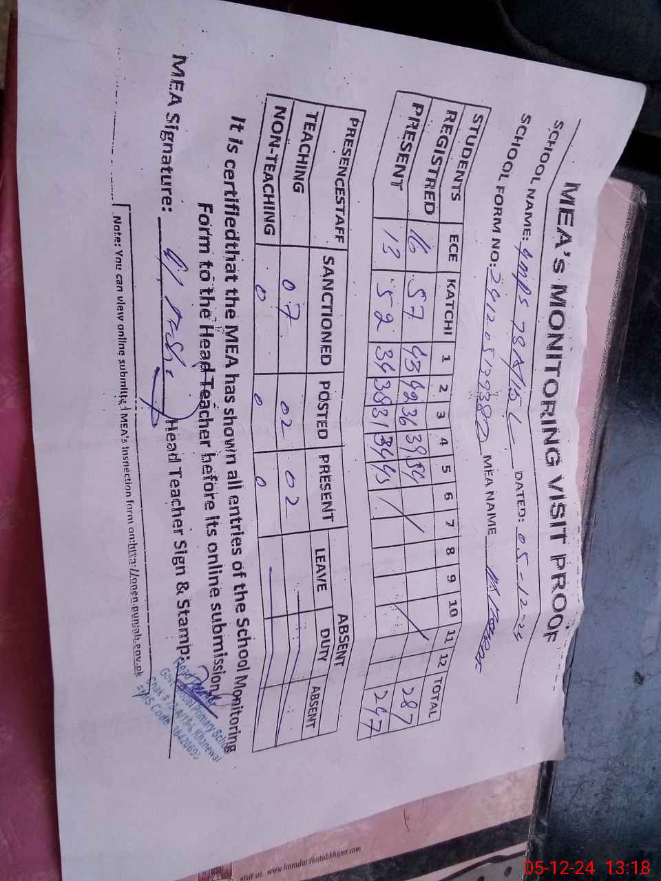 | EMIS Code: 36420695 | Name of School: GPMS 78-A/15-L, KACHA KHUH | |||