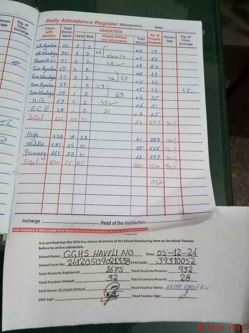| EMIS Code: 39310052 | Name of School: GGHS NO. 2 HAVELI LAKHA RAILWAY ROAD | |||