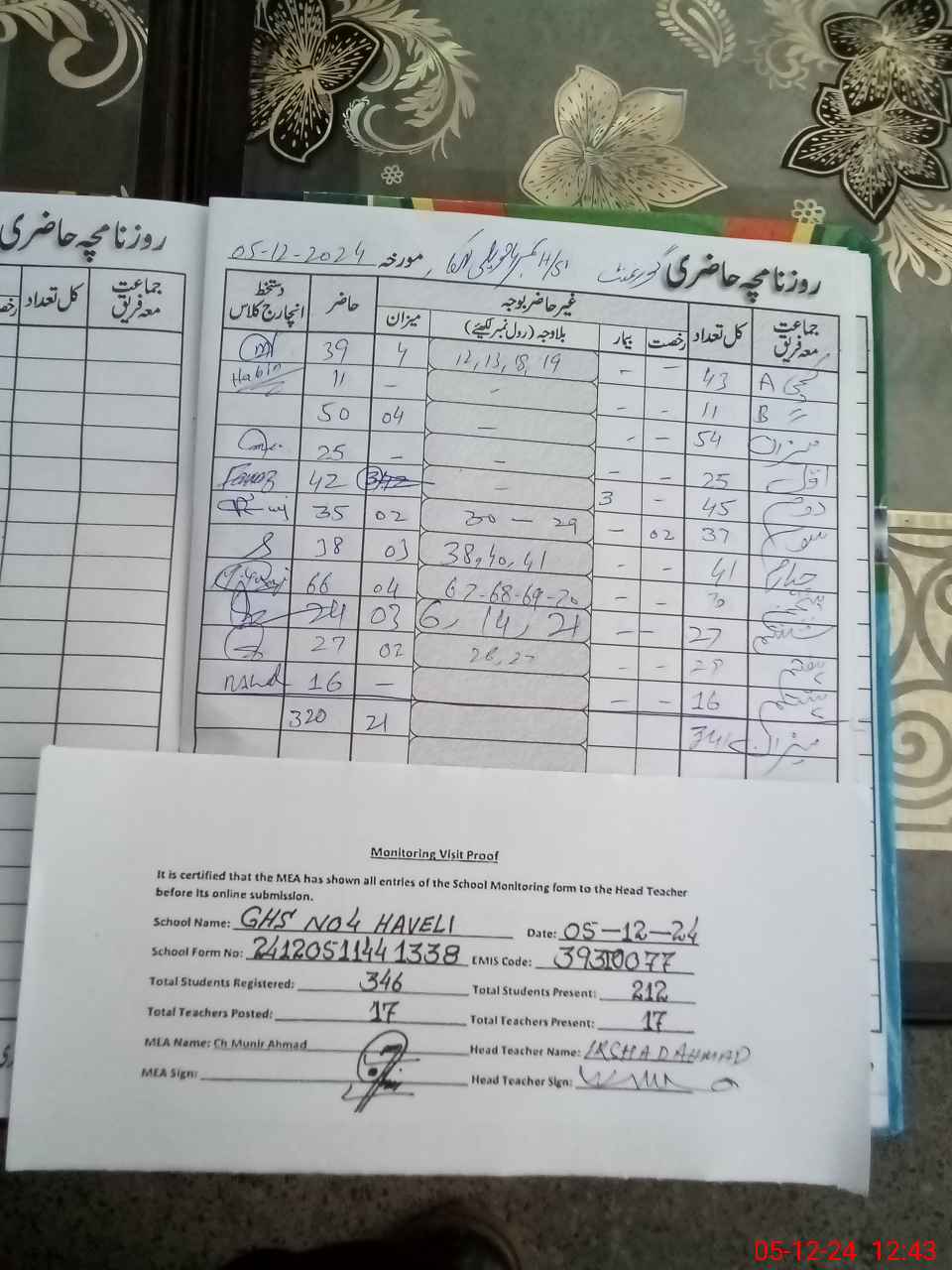 | EMIS Code: 39310077 | Name of School: GHS NO.4 HAVELI LAKHA | |||