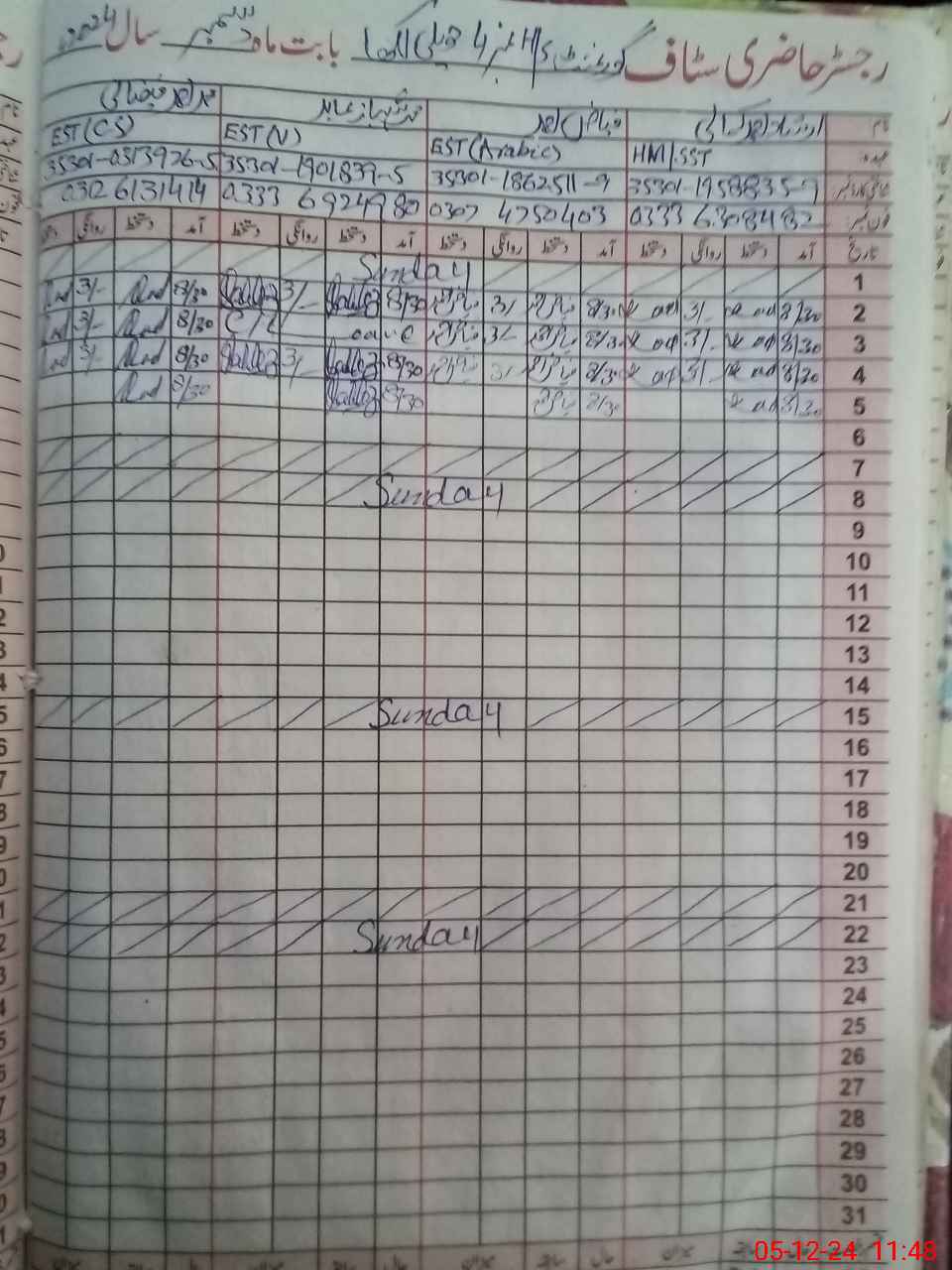 | CNIC | Full Name | Designation | R/C | Absence During Last Calender Month |