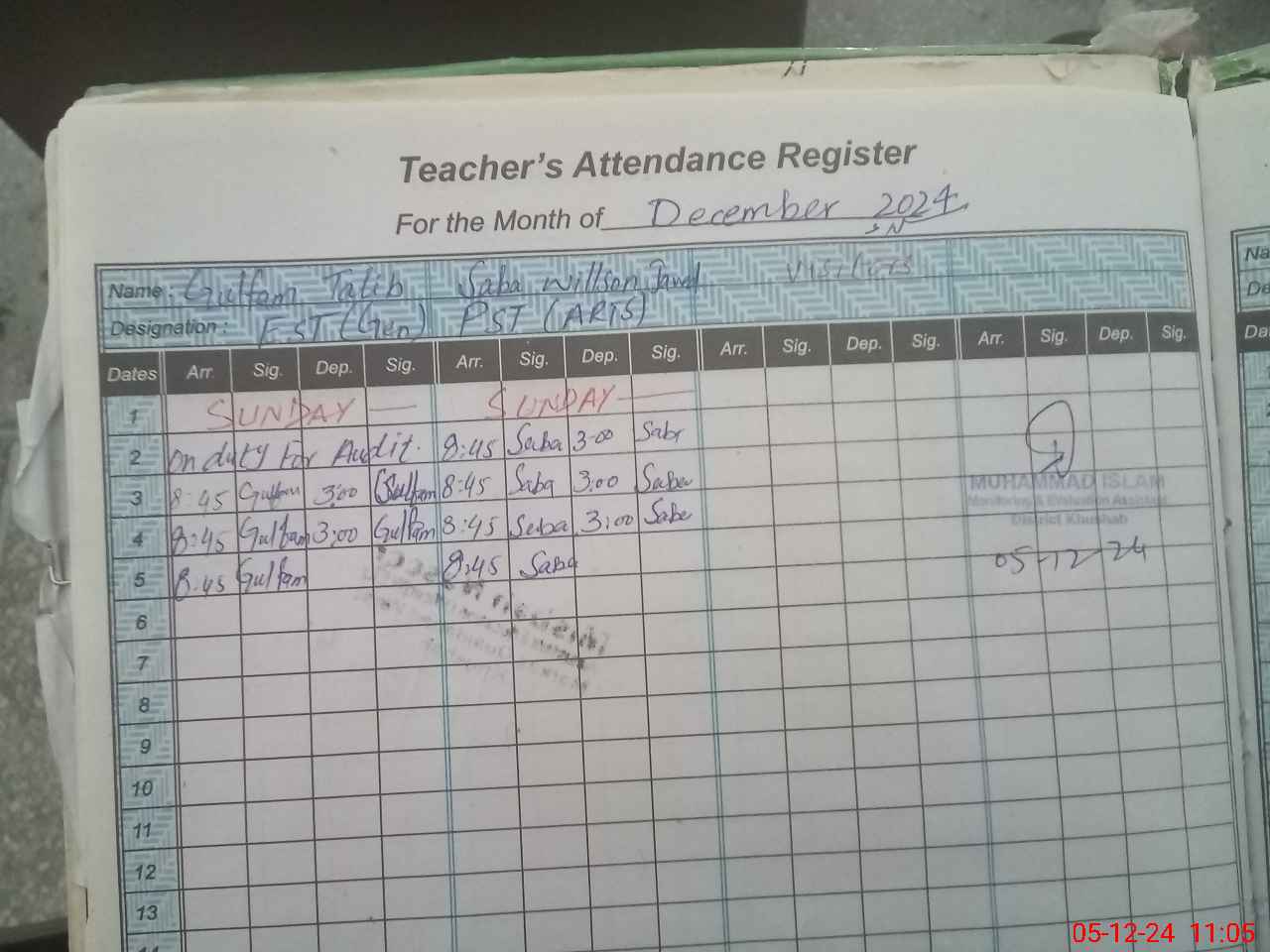 | Monitoring Date: 05-12-2024 | Start Time: 05-12-2024 10:31 AM | End Time: 05-12-2024 11:09 AM | Name of MEA: MU**** IS**** | |
