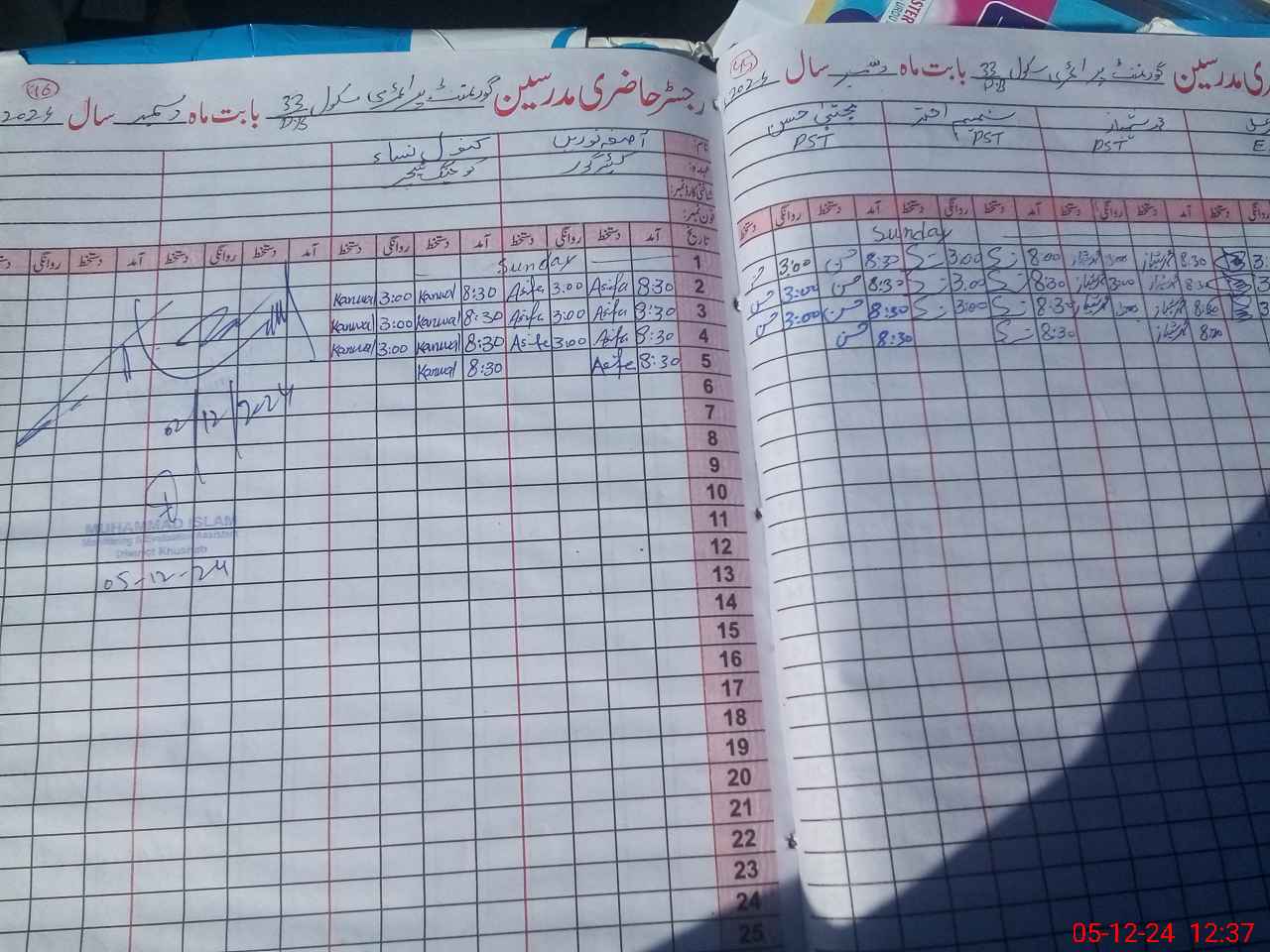 | CNIC | Full Name | Designation | R/C | Absence During Last Calender Month |