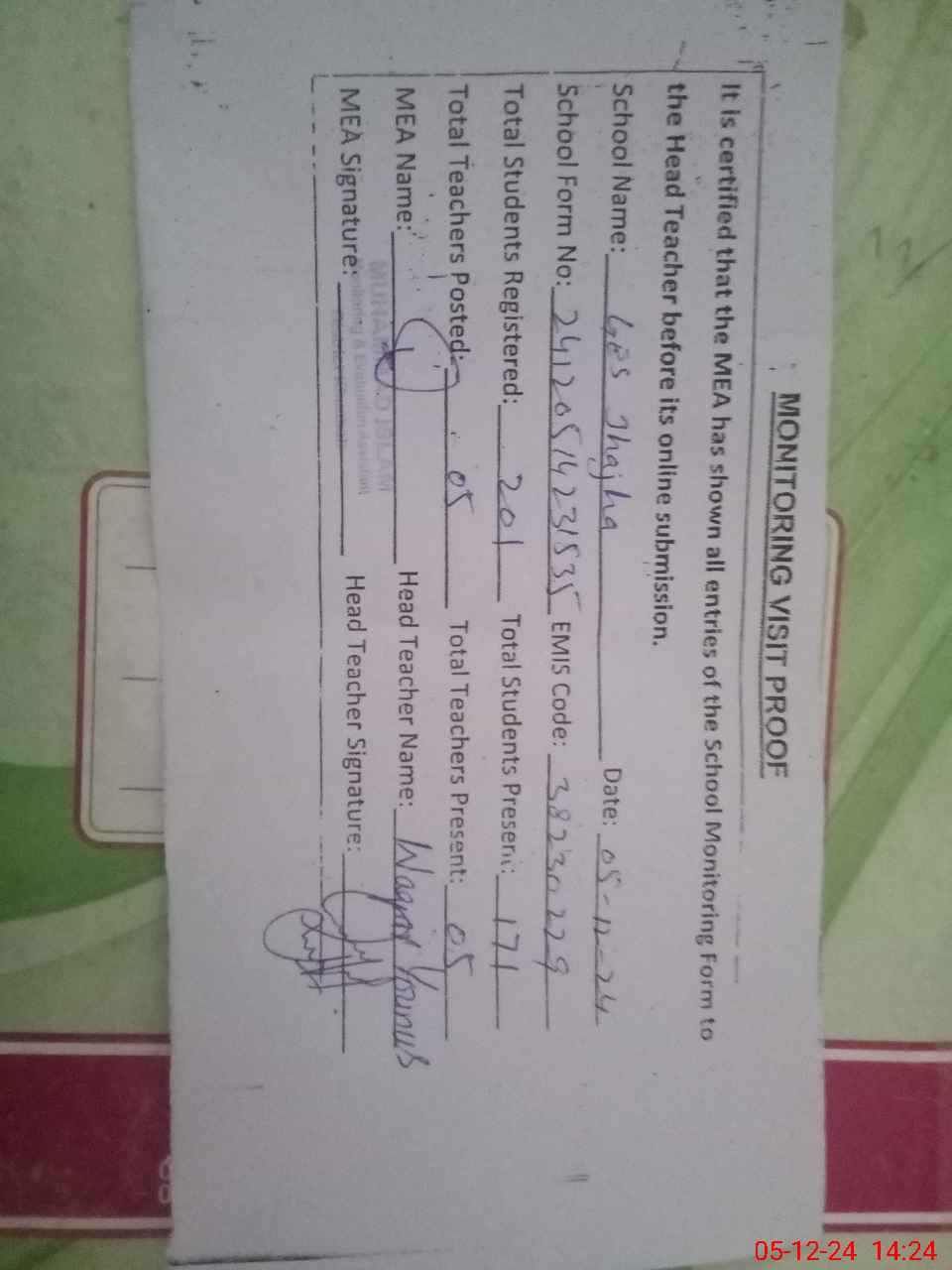 | EMIS Code: 38230229 | Name of School: GES JHAJHA | |||