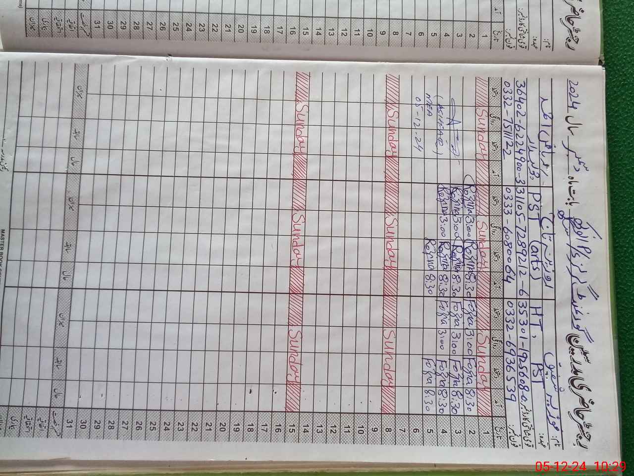 | CNIC | Full Name | Designation | R/C | Absence During Last Calender Month |