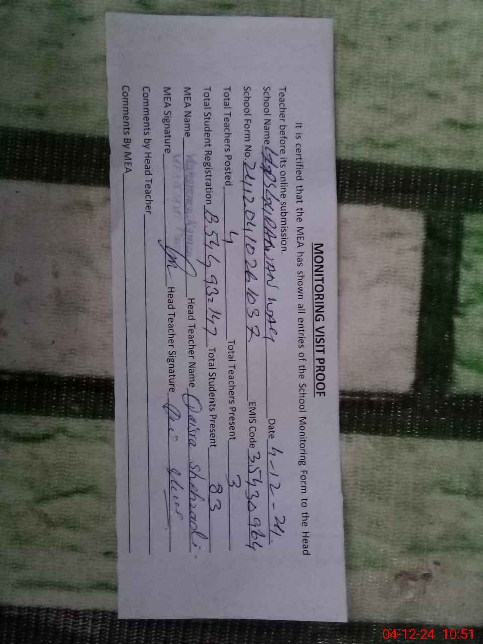 | Name: Qa**** Sh**** Designation: (School Headmaster's/Headmistress's) Pst Phone/Cell Number: 03**** |