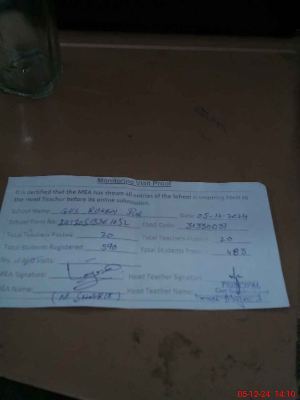 | Name: Im**** Ma**** Designation: (School Headmaster's/Headmistress's) SR.HM Phone/Cell Number: 03**** |