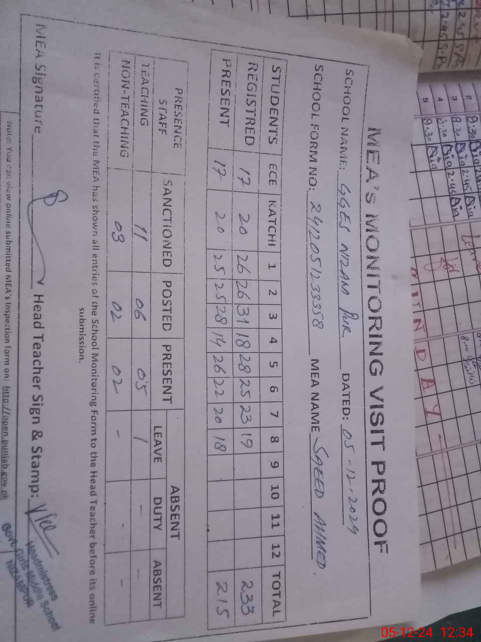 | EMIS Code: 36410099 | Name of School: GGES NIZAM PUR, KABIRWALA | |||
