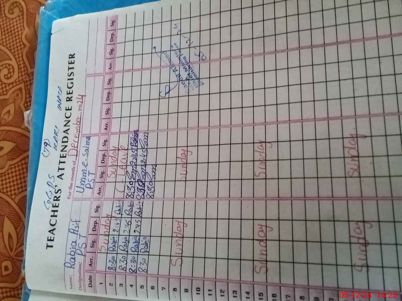 | Name: Ra**** As**** Designation: (School Headmaster's/Headmistress's) PST Phone/Cell Number: 03**** |