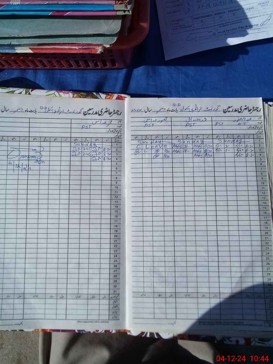 | CNIC | Full Name | Designation | R/C | Absence During Last Calender Month |