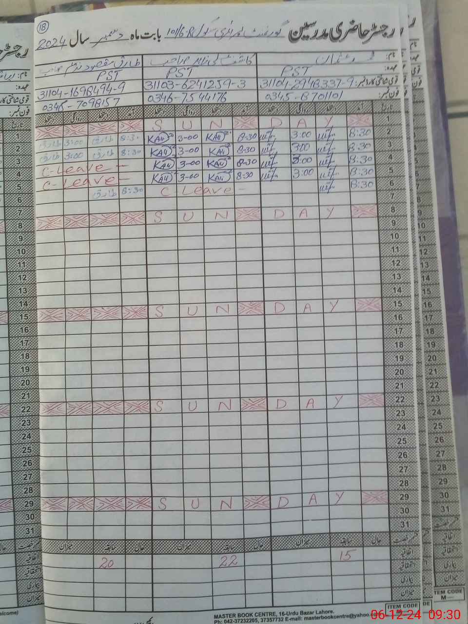 | 31**** | Ka**** Al**** Za**** | PST | Regular | 4 | 0 | 0 | 0 | 0 | 0 | 0 | 0 | 4 | Casual |
