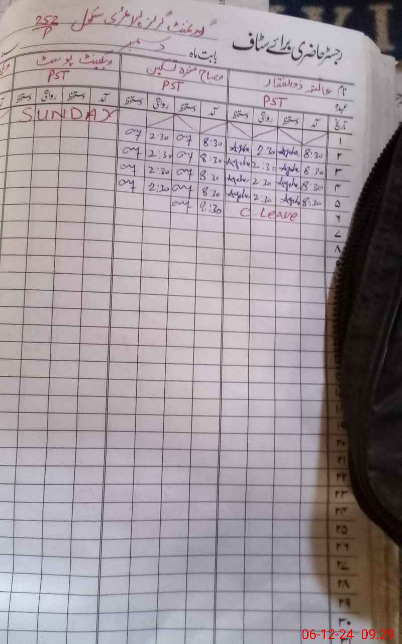 | Name: Ay**** Zu**** Designation: (School Headmaster's/Headmistress's) PST Phone/Cell Number: 03**** |