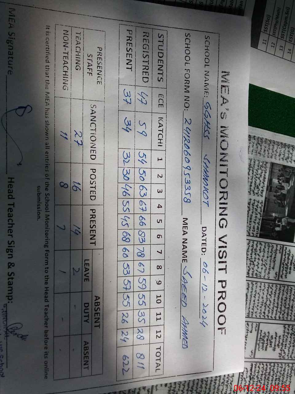 | Monitoring Date: 06-12-2024 | Start Time: 06-12-2024 09:07 AM | End Time: 06-12-2024 09:57 AM | Name of MEA: Sa**** Ah**** | |