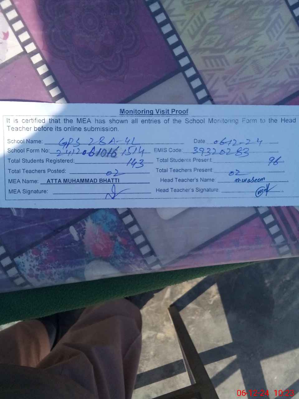 | EMIS Code: 39320283 | Name of School: GPS 28-A/4.L | |||