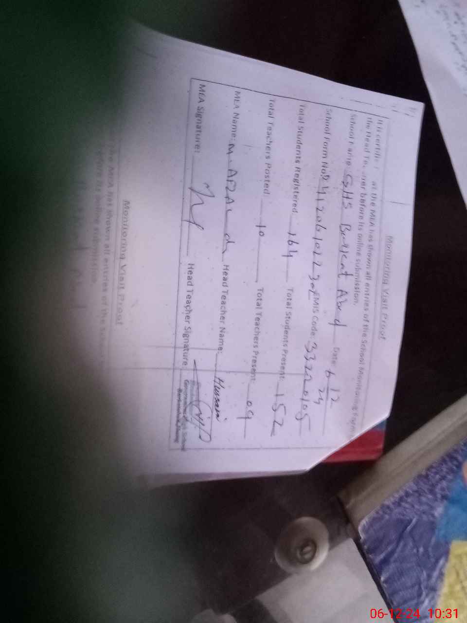 | EMIS Code: 33220105 | Name of School: GHS BARKAT ABAD | |||