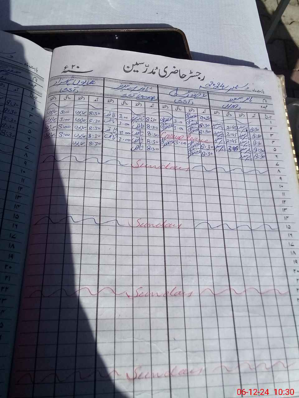 | CNIC | Full Name | Designation | R/C | Absence During Last Calender Month |