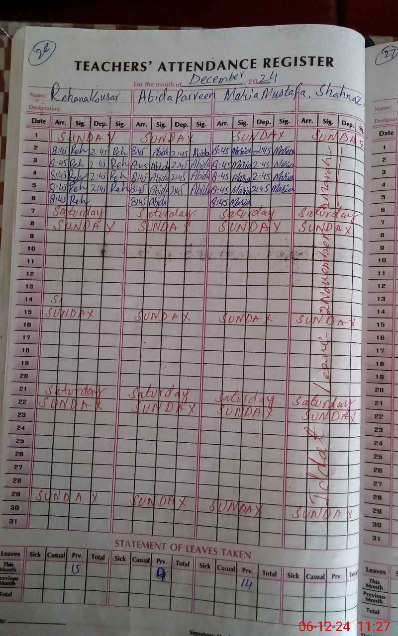 | Attendance Register | Head Teacher | MEA with School | Visit Proof |