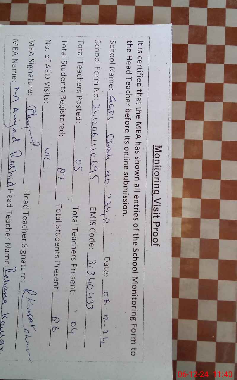 | EMIS Code: 31340433 | Name of School: GGPS CHAK NO. 234/P | |||
