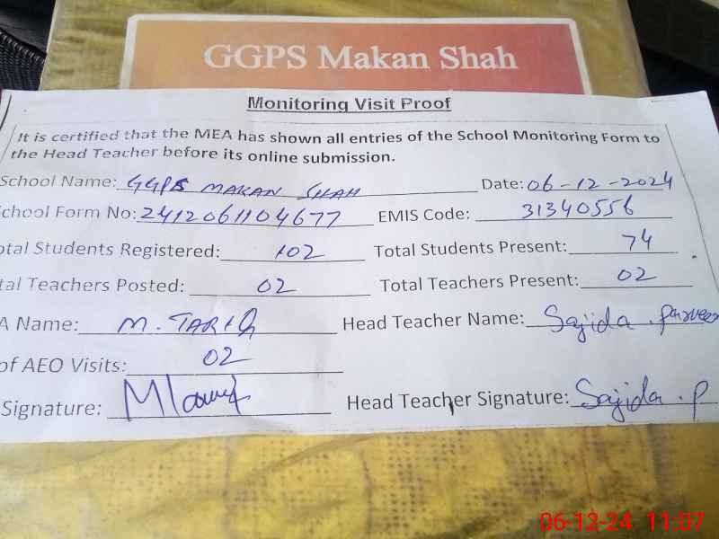 | EMIS Code: 31340556 | Name of School: GGPS MAKAN SHAH | |||