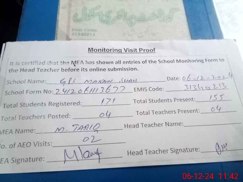 | EMIS Code: 31340213 | Name of School: GPS MAKAN SHAH | |||