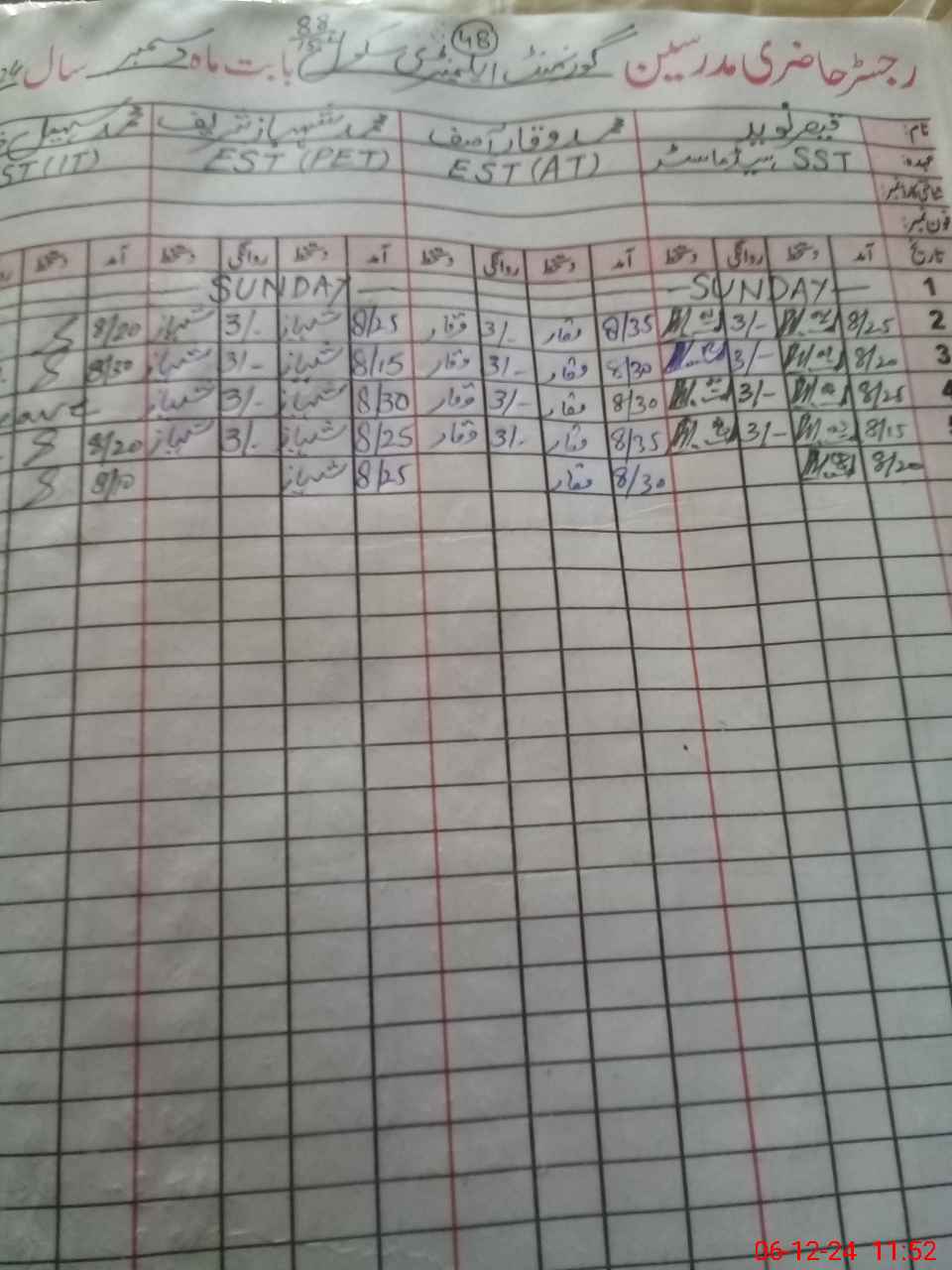 | CNIC | Full Name | Designation | R/C | Absence During Last Calender Month |