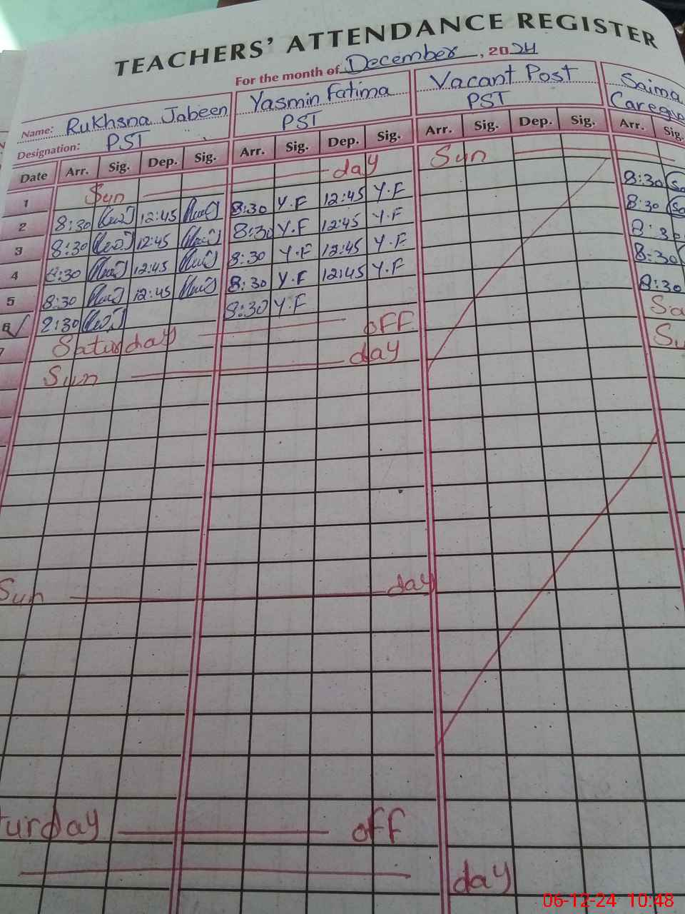 | CNIC | Full Name | Designation | R/C | Absence During Last Calender Month |