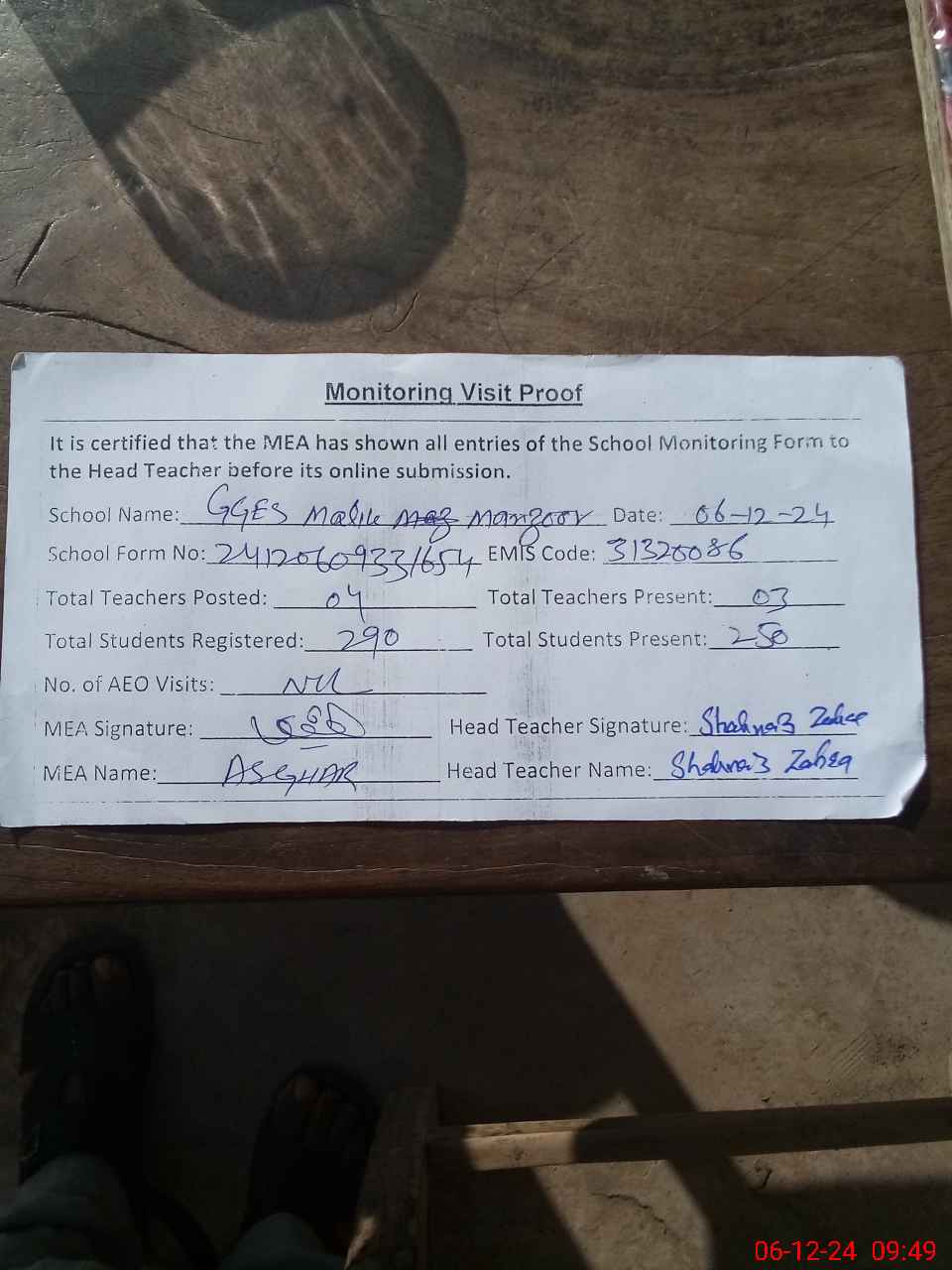 | EMIS Code: 31320086 | Name of School: GGES MALIK MANZOOR AHMAD | |||