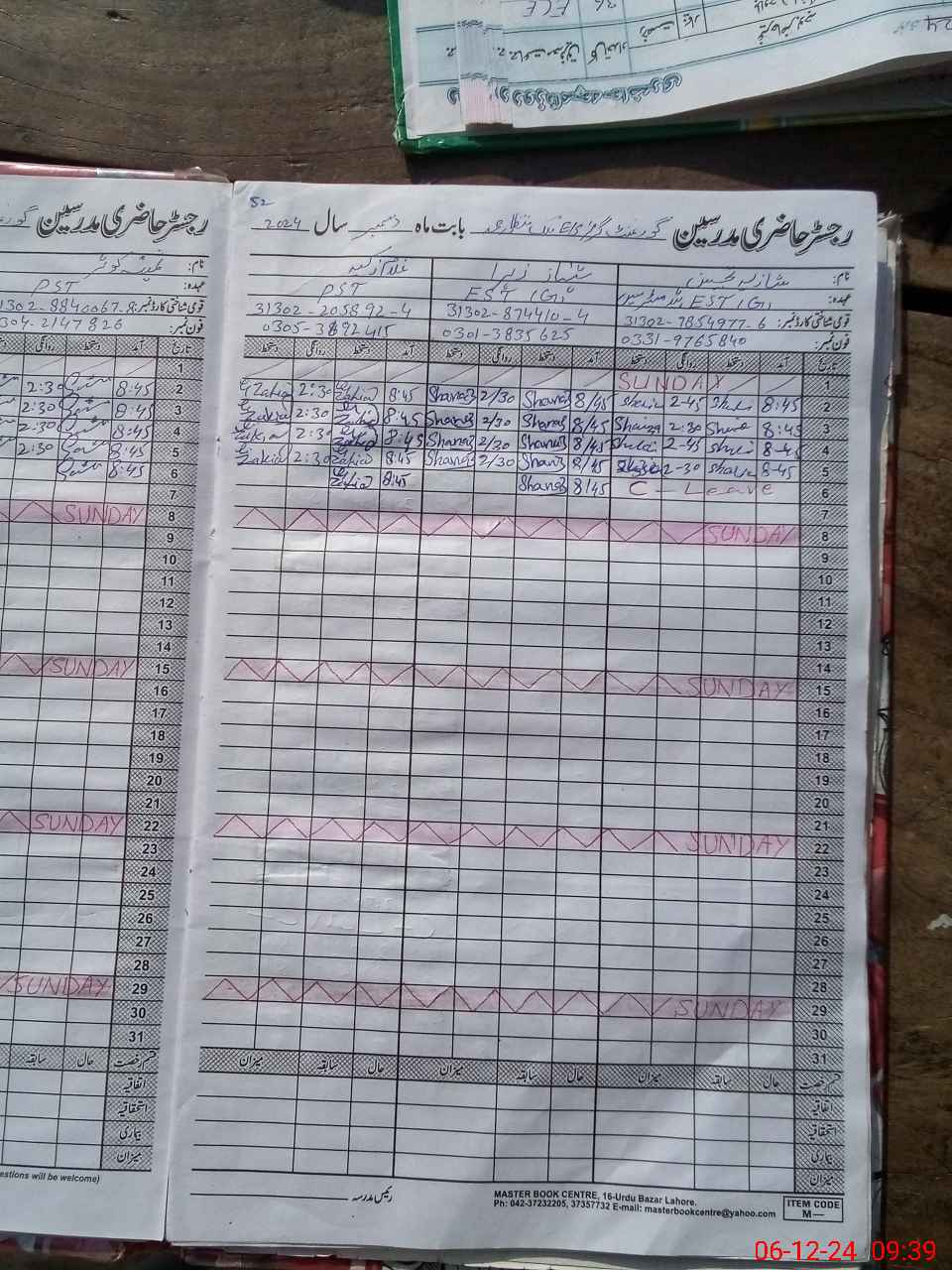 | Name: SH**** TA**** Designation: (School Headmaster's/Headmistress's) EST ( GEN) Phone/Cell Number: 03**** |