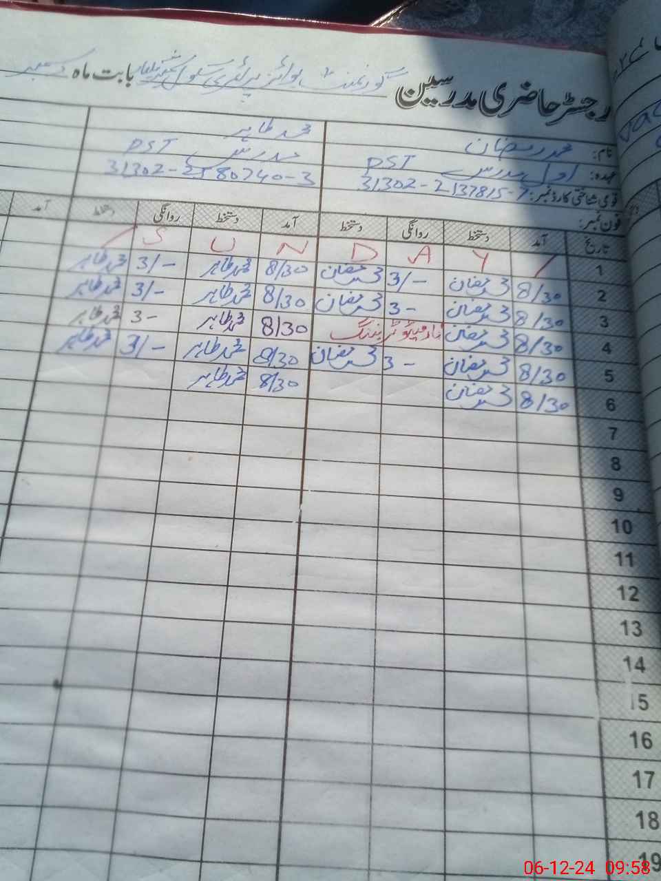 | Name: Mu**** Rm**** Designation: (School Headmaster's/Headmistress's) PST/PTC/JV Phone/Cell Number: 03**** |