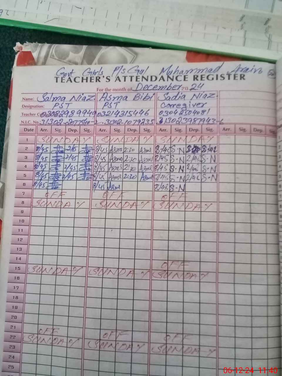 | Name: SA**** NI**** Designation: (School Headmaster's/Headmistress's) PST/PTC/JV Phone/Cell Number: 03**** |