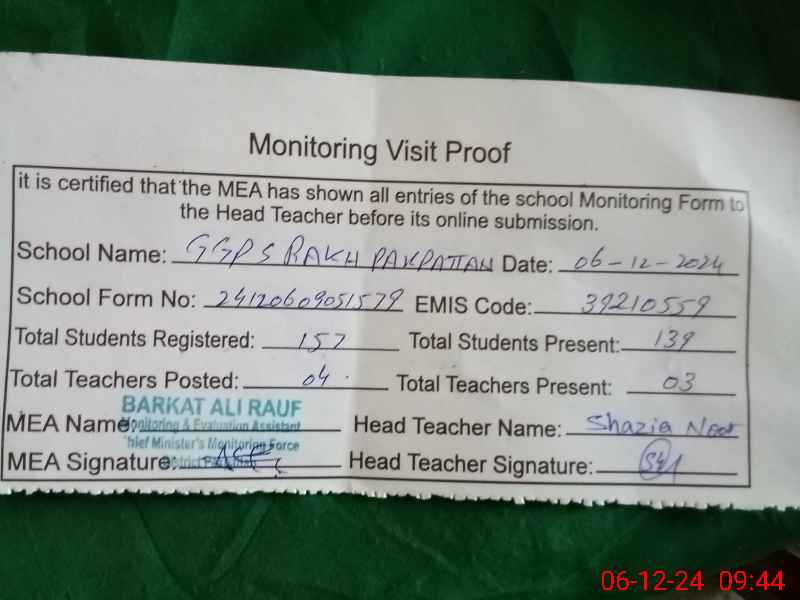 | EMIS Code: 39210559 | Name of School: GGPS RAKH PAKPATTAN | |||