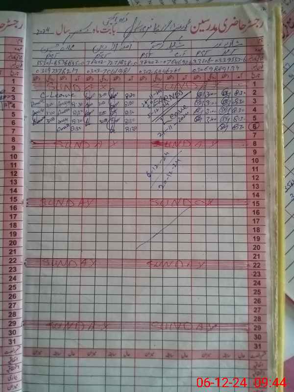 | CNIC | Full Name | Designation | R/C | Absence During Last Calender Month |