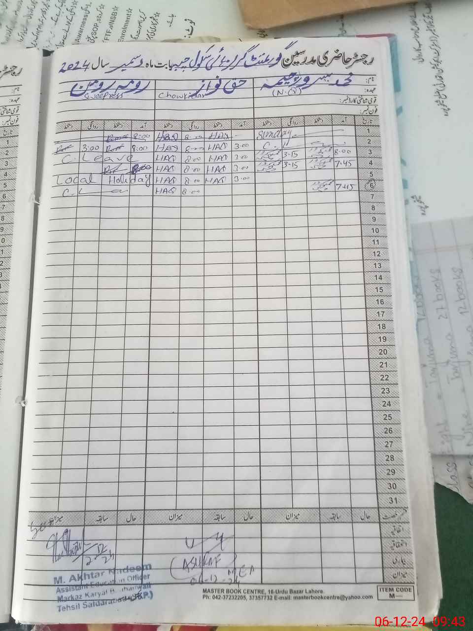 | Name: Qa**** Ra**** Designation: (School Headmaster's/Headmistress's) S.S.T.(SC) Phone/Cell Number: 03**** |