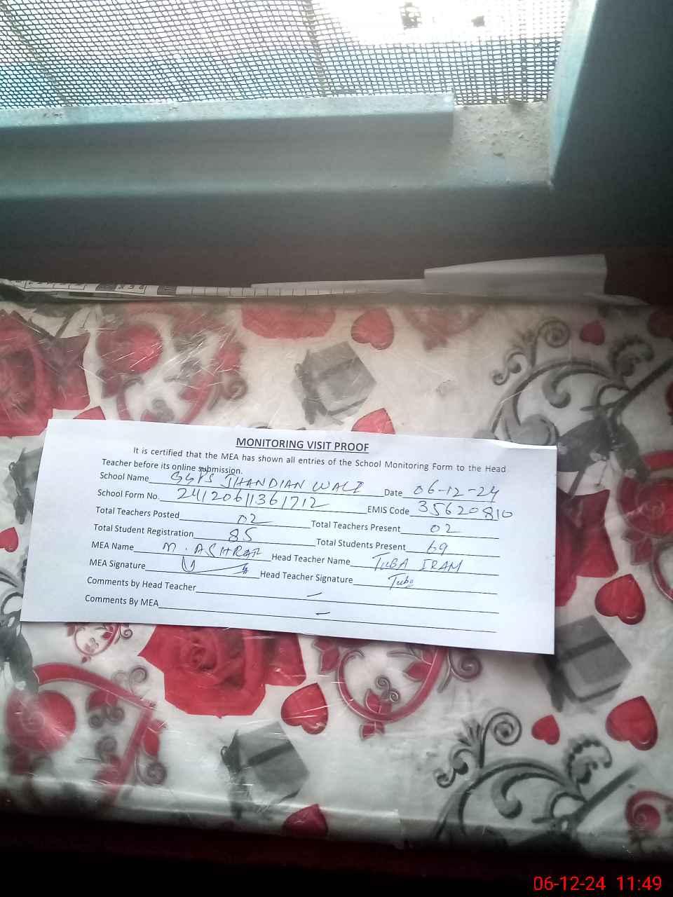 | EMIS Code: 35620810 | Name of School: GGPS JHANDIAN WALI | |||