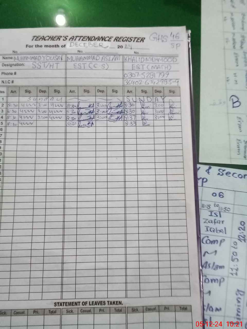 | Name: Mu**** Yo**** Designation: (School Headmaster's/Headmistress's) S.S.T.(GEN) Phone/Cell Number: 03**** |