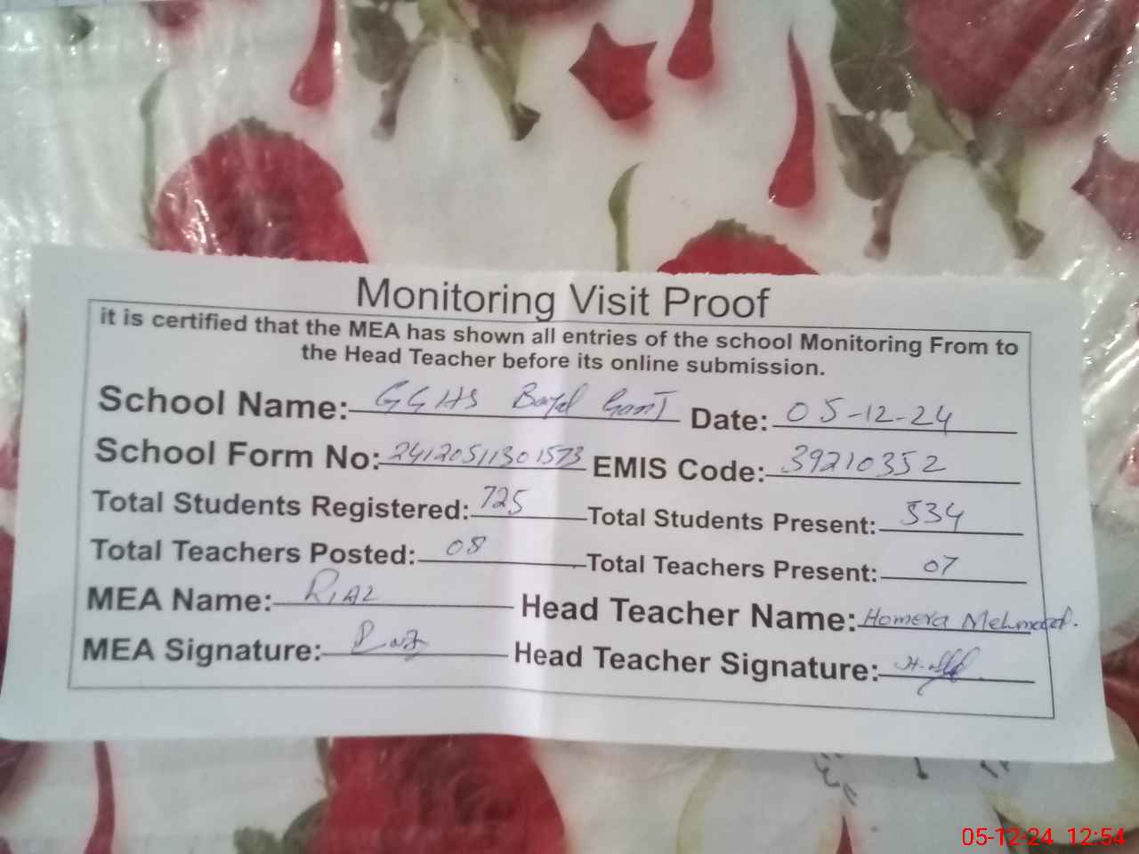 | EMIS Code: 39210352 | Name of School: GGHS BAYAL GANJ PAKPATTAN | |||